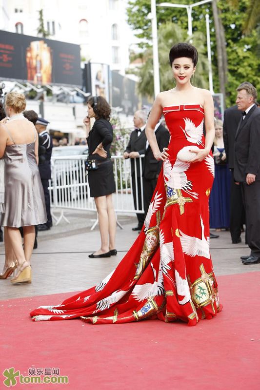 北京時間5月11日深夜,第64屆戛納國際電影節(jié)隆重開幕。今年的戛納紅毯明星云集,安東尼奧·班德拉斯、庫斯圖里卡、昆汀·塔倫蒂諾、費·唐諾薇、瑞切爾·麥克亞當(dāng)斯、烏瑪·瑟曼等明星讓紅毯星光熠熠。中國明星出現(xiàn)的頻率也頗高。除了評委施南生和杜琪峰外,本屆戛納出現(xiàn)在開幕式紅毯上的中國女明星共有三位:鞏俐、范冰冰、袁莉。按照國際影響力大小,原本該是鞏俐排第一,但意外的是,今年戛納官方直播時,卻選擇了把最多的鏡頭給予范冰冰。范冰冰當(dāng)天穿了一身紅色的仙鶴裝。仙鶴裝以中國紅為底色,上繡九只形態(tài)各異的仙鶴,中間還點綴著梅蘭竹菊。據(jù)范冰冰的宣傳總監(jiān)楊小姐介紹,選擇這件衣服是因為“海為龍世界,云是鶴家鄉(xiāng)”,這是繼去年的龍袍后,范冰冰再次選擇中國元素禮服來展現(xiàn)東方美。記者還了解到,其實除了這件仙鶴裝,范冰冰原本還有一套西式晚裝供選擇。在中規(guī)中矩的西式晚裝和中國風(fēng)情的仙鶴裝中,范冰冰一度擔(dān)心這套仙鶴裝過于夸張,但在最后決斷時,她還是憑本能選擇了夸張的這套。