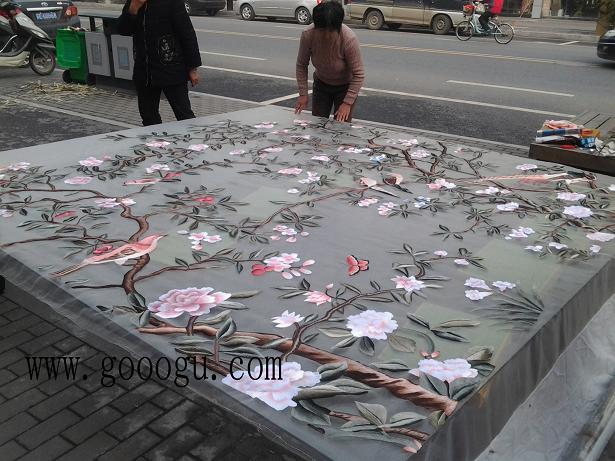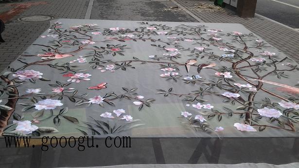 此蘇繡雙面繡刺繡隔斷現位于浙江省杭州市莫干山路梅苑賓館大廳.歡迎實地參觀!