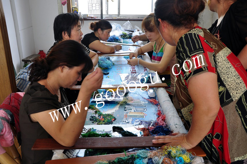 嬌古蘇繡繡娘正在一起認真研討刺繡的工藝和繡法,確保作品達到行業高水平