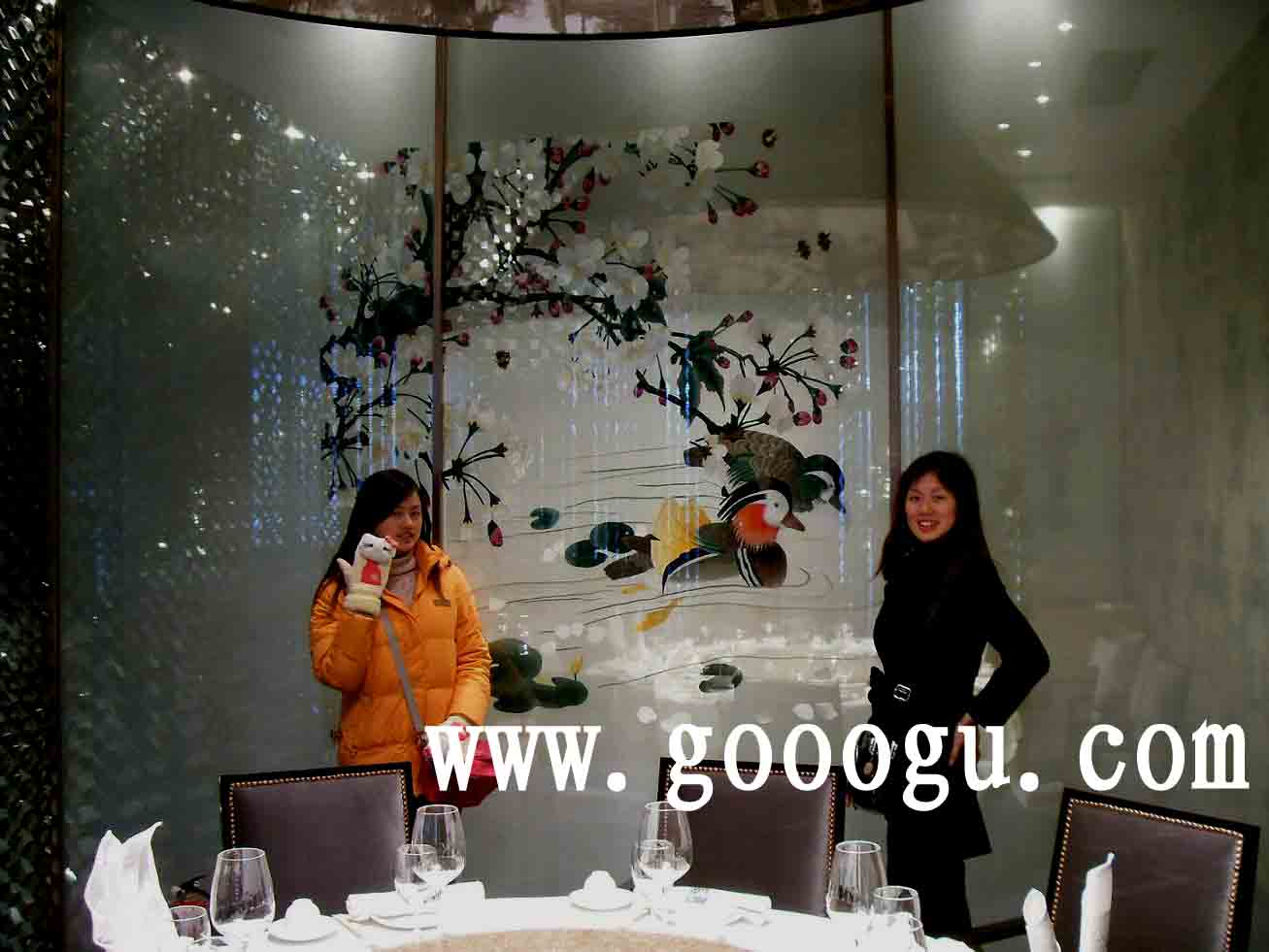 (一) 應用行業及人群 大型酒店、別墅裝修、單位大廳裝飾等 (二) 商業用途 大型酒店定做包廂雙面繡隔斷、別墅定做玄關雙面繡隔斷、單位大型壁畫裝飾等 (三) 選擇理由 代表中國傳統的特色文化,雙面繡隔斷透明中滲透著傳統中國傳統文化元素! (四) 應用案例 1. 蘇浙匯飯店為中國知名的高檔餐飲企業,蘇浙匯蘇州園區店包廂裝飾隔斷選用嬌古蘇繡雙面繡,兩豪華包廂間用兩塊鋼化玻璃夾住雙面繡品做為隔斷,客人在享受美食的同時感受博大精深的中華傳統文化。