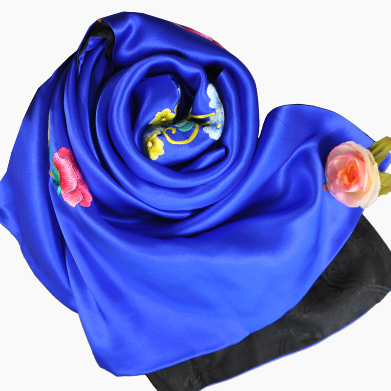 純手工繡花圍巾 真絲圍巾 桑蠶絲 高檔絲綢禮品