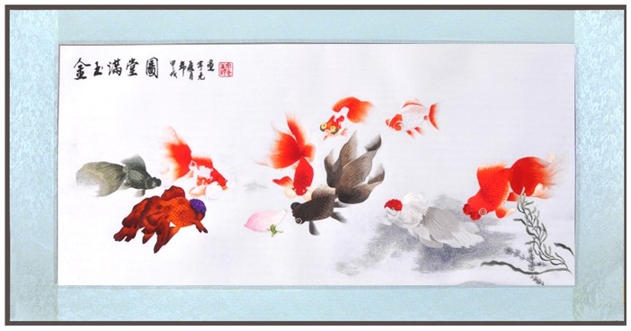 蘇繡禮品 手工刺繡 商務(wù)禮品外賓 金玉滿(mǎn)堂 金魚(yú)