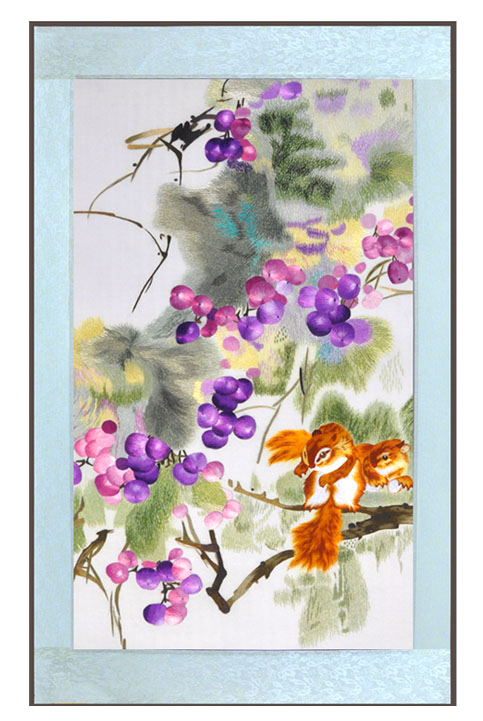 蘇繡 手工刺繡 商務(wù)禮品 祝壽禮品多子多福 豐收 葡萄