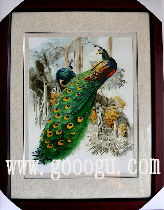 孔雀刺繡壁畫|蘇州刺繡掛畫|刺繡手工藝品