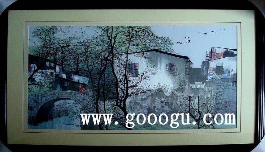 水鄉風情刺繡|建筑刺繡畫|黑白裝飾畫
