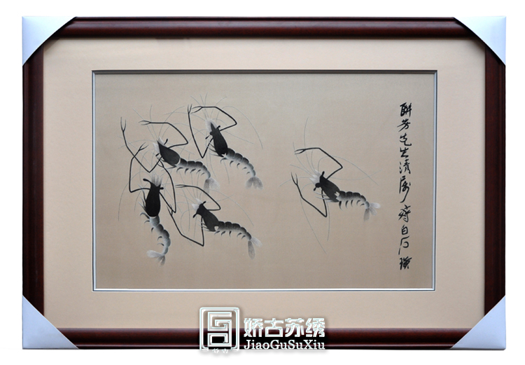 蘇繡蝦 手工刺繡 水墨蝦 國畫 齊白石的蝦