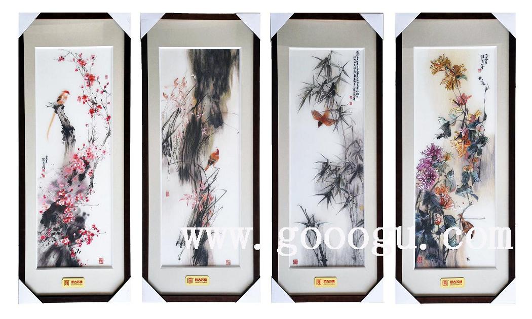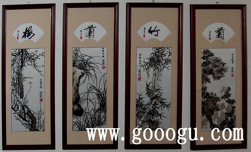 梅蘭竹菊刺繡裝飾畫|蘇州刺繡畫|手工刺繡工藝品