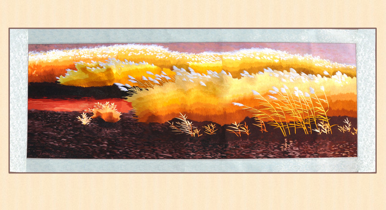蘇繡風景畫熱銷客廳壁畫金秋蘆葦