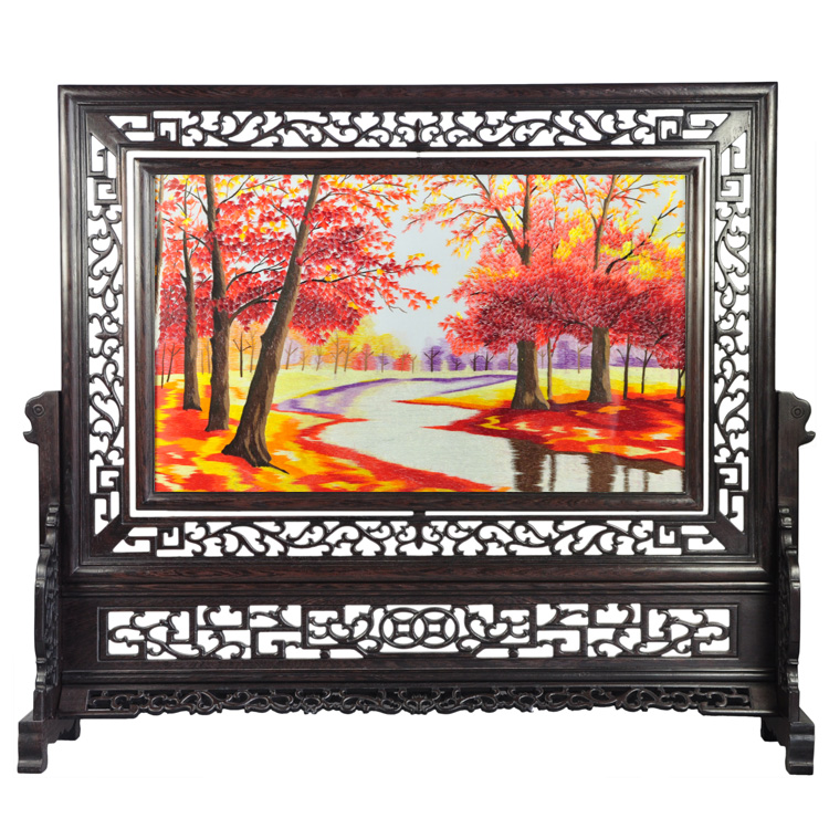 風景刺繡畫紅色楓林成品手工刺繡成品特色蘇繡送外國人禮品