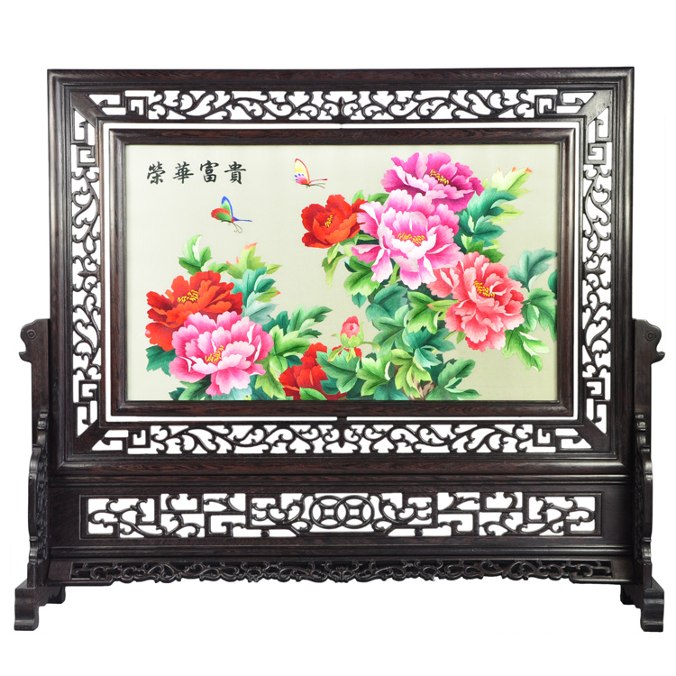 牡丹雙面繡 雙框雞翅木刺繡 手工藝品 北京特色外事禮物 蘇繡禮品