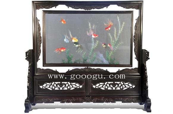 蘇繡精品紫檀雙面繡水草金魚居家裝飾品婚慶禮品