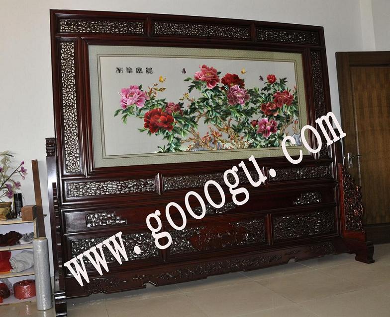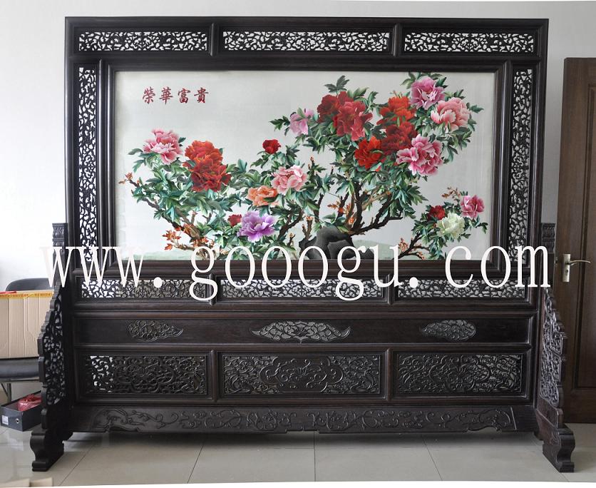 大廳裝飾刺繡擺件&紅木家具擺件&古典屏風隔斷&孔雀牡丹蘇繡屏風