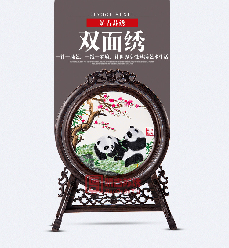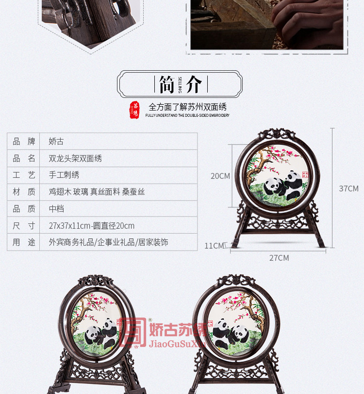 雙龍頭架雙面繡|蘇州刺繡禮品|企業定制刺繡禮品|定制企業LOGO禮品