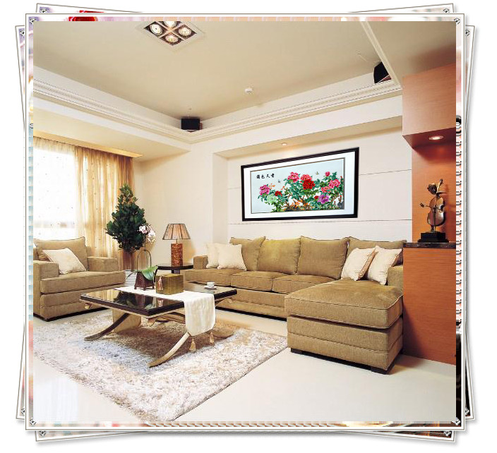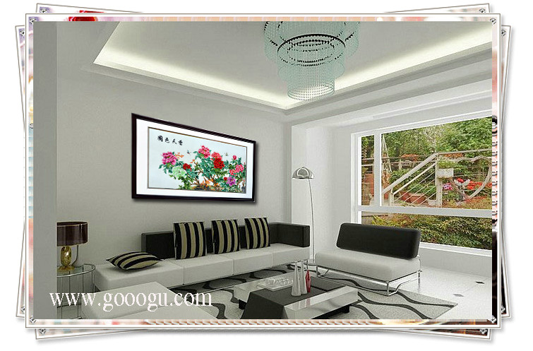 【蘇繡名稱】:國色天香裝飾壁畫 【蘇繡規格】:60*160(圖案尺寸) 88*200CM(外框尺寸) 【蘇繡工藝】:嬌古蘇繡工藝師 【外框材質】:實木框拉丁木 【絲線材質】:蠶絲線 【蘇繡檔次】:6-8絲刺繡。 【嬌古蘇繡出廠價】:5200元(含運費) 【發貨方式】:由我司安排發往客人指定地點 【細節欣賞】
