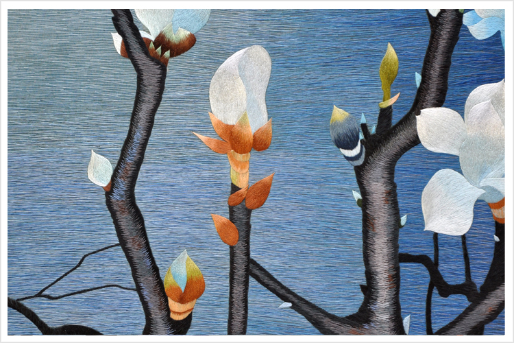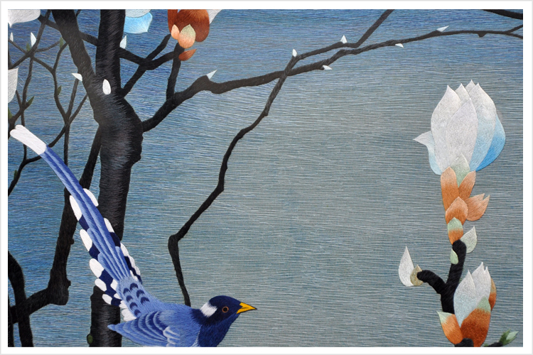 蘇繡玉蘭花鳥刺繡收藏品畫中歐式結(jié)合花鳥蘇繡滿繡畫