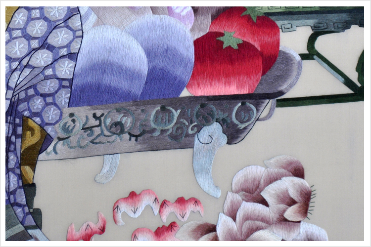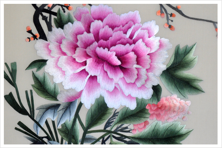 (蘇繡小知識:1根蘇繡絲線可分為16絲,中檔刺繡皆為10絲所繡,中高檔刺繡皆為6-8絲,高檔刺繡皆為4-6絲,精品刺繡皆為1-4絲)