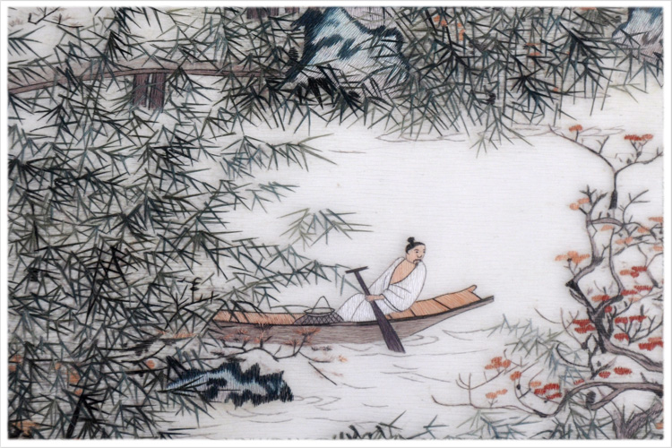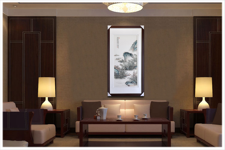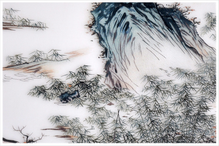 【品 牌】:嬌古 (作品代碼 D-1028) 【品 名】:南岸山水裝飾畫(手工蘇繡) 【品 質】:1-2絲刺繡 (蘇繡小知識:1根蘇繡絲線可分為16絲,中檔刺繡皆為10絲所繡,中高檔刺繡皆為6-8絲,高檔刺繡皆為4-6絲,精品刺繡皆為1-4絲) 【尺 寸】:畫心尺寸50*100cm 整體尺寸75*130cm 【產品工藝】:手工刺繡 【絲線材質】:蠶絲線 。 【用 途】:居家裝飾或送政府禮品、外賓禮品、生日禮物、賀壽禮品、領導升遷、出國禮品等等。 【出廠價格】:15000元 【細節圖】