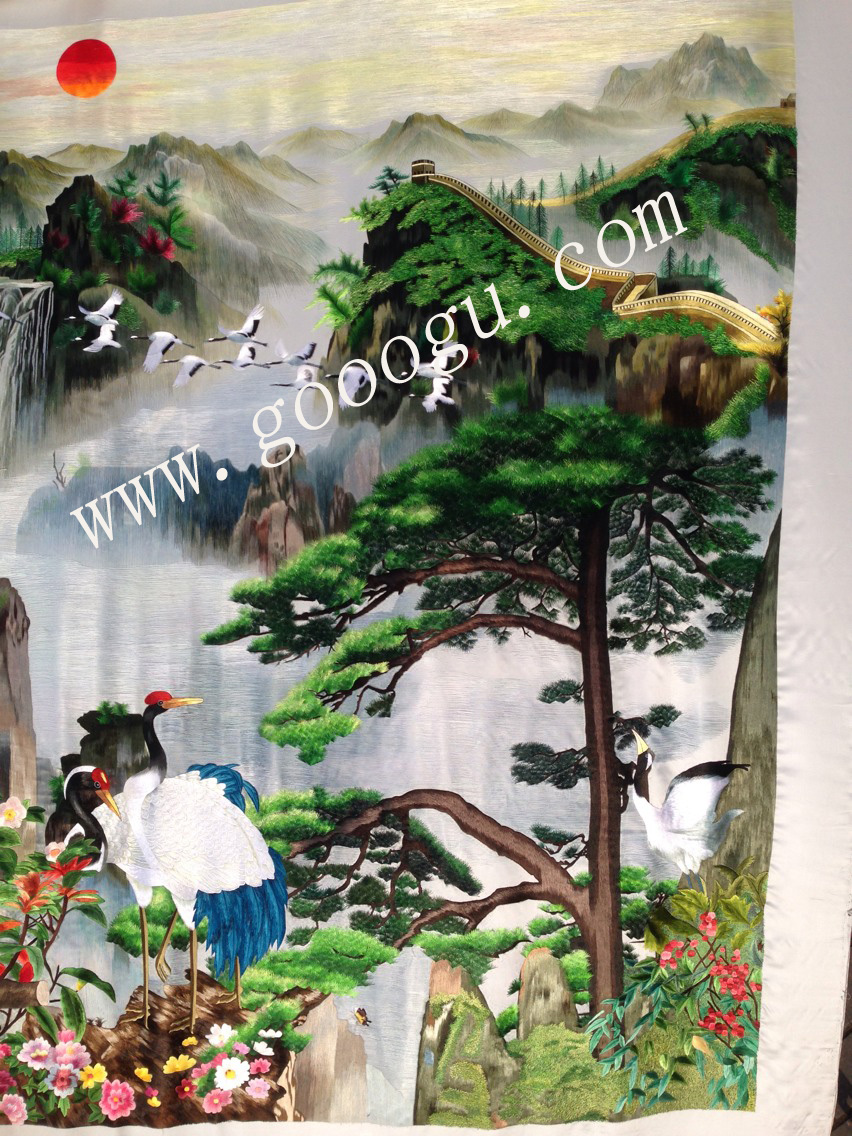 在一次出差過程中,黃先生來到蘇州,無意中發現了蘇繡的奇特,為此,黃先生來到嬌古蘇繡,把自己的想法和要求告訴了嬌古的工作人員,在經過很多圖片的帥選之后,確定下來訂做這款《錦繡中華》的作品。