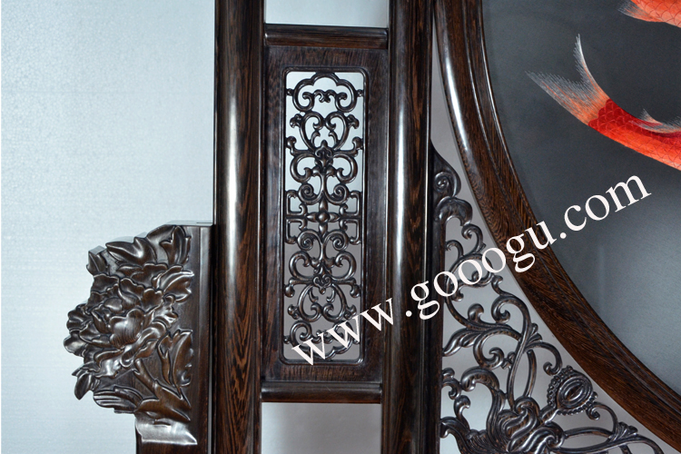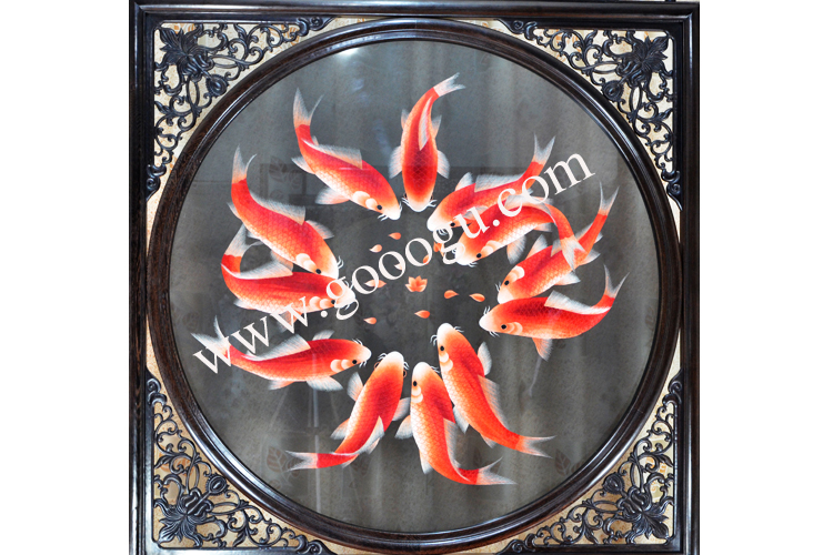 【產品說明】:此款雙面繡屏風,是由蘇州工藝師耗時數個月精心手工刺繡而成,刺繡圖案以中國傳統的魚為題材繡工精細,顏色搭配均勻過渡自然,整體給人舒適,愜意之感,屏風的框架選用進口的雞翅木為料,是蘇繡屏風中的經典作品。是企事業大堂或大廳的重要裝飾品之一!歡迎親臨嬌古蘇繡展示廳觀看實物!