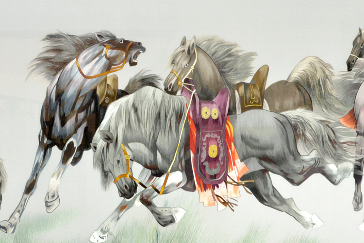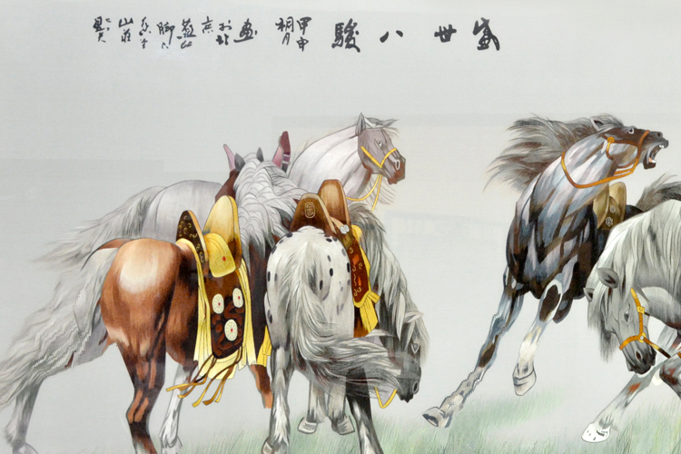 【產(chǎn)品名稱(chēng)】:蘇繡屏風(fēng)---盛世八駿(雙面繡) (作品代碼:P-1068) 【產(chǎn)品規(guī)格】:圖案尺寸寬度200cm,高度85cm 外框整體尺寸寬265cm,高210cm 【產(chǎn)品工藝】:手工刺繡 【產(chǎn)品材質(zhì)】:真絲面料+雞翅木框+桑蠶絲線+玻璃 【產(chǎn)品包裝】:木箱包裝,用海綿包扎,確保運(yùn)輸安全 【出廠價(jià)】:42000元 【產(chǎn)品運(yùn)輸】:我司負(fù)責(zé)發(fā)往客戶(hù)指定地點(diǎn),蘇州附近城市可送貨上門(mén)! 【產(chǎn)品說(shuō)明】:此款雙面繡屏風(fēng),是由蘇州工藝師耗時(shí)六個(gè)月精心手工刺繡而成,刺繡圖案以中國(guó)傳統(tǒng)文化中馬為題材繡工精細(xì),整幅作品注重對(duì)馬細(xì)節(jié)特征的描寫(xiě),表情更是神態(tài)不一,顏色搭配均勻過(guò)渡自然,屏風(fēng)的框架選用雞翅木為料,是蘇繡屏風(fēng)中的經(jīng)典作品。是企事業(yè)大堂或大廳的重要裝飾品之一!歡迎親臨嬌古蘇繡展示廳觀看實(shí)物! 【作品欣賞】 .jpg)