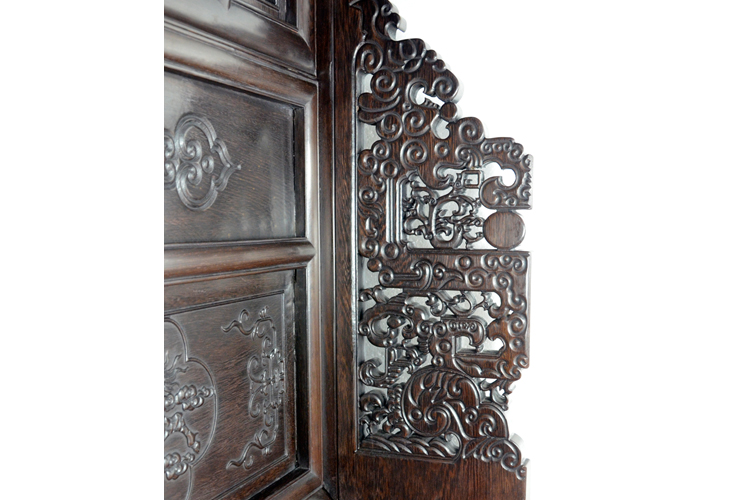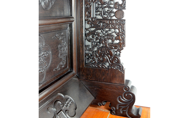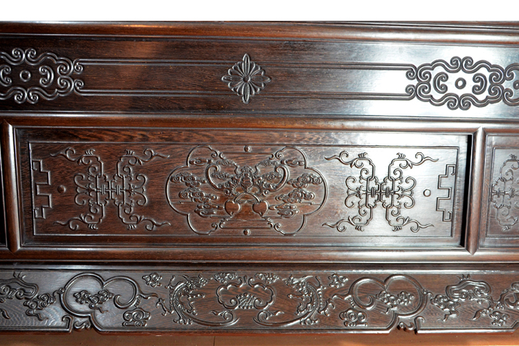 浮雕配有翔云和蝙蝠,寓意富貴吉祥 |