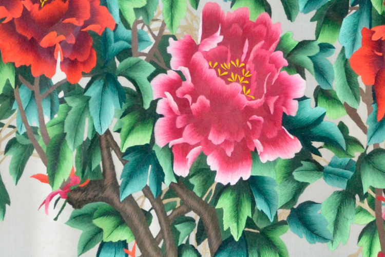【產(chǎn)品名稱(chēng)】:榮華富貴牡丹屏風(fēng) (作品代碼:P-1090) 【產(chǎn)品規(guī)格】:圖案尺寸寬度120cm,高度80cm 外框整體尺寸寬180cm,高195cm 【產(chǎn)品工藝】:純手工刺繡 【產(chǎn)品材質(zhì)】:真絲面料+花梨木框+桑蠶絲線+玻璃 【產(chǎn)品包裝】:木箱包裝,用海綿包扎,確保運(yùn)輸安全 【出廠價(jià)】:18000元 【產(chǎn)品運(yùn)輸】:我司負(fù)責(zé)發(fā)往客戶(hù)指定地點(diǎn),蘇州附近城市可送貨上門(mén)! 【產(chǎn)品說(shuō)明】:此款雙面繡屏風(fēng),是由蘇州工藝師耗時(shí)三個(gè)月精心手工刺繡而成,刺繡圖案以國(guó)花牡丹為題材繡工精細(xì),顏色搭配均勻過(guò)渡自然,整體給人舒適,愜意之感,屏風(fēng)的框架選用花梨木為料。是家用玄關(guān)或辦公室玄關(guān)的雅致作品!歡迎親臨嬌古蘇繡展示廳觀看實(shí)物! 【作品欣賞】 .jpg)