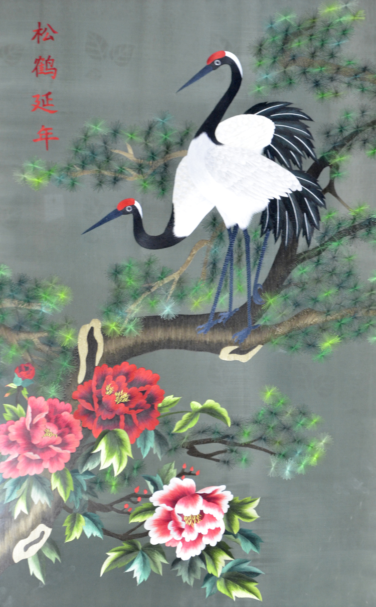 【產品名稱】:松鶴延年屏風(雙面繡) (作品代碼:P-1206) 【產品規格】:圖案尺寸寬度70cm,高度110cm 外框整體尺寸寬110cm,高195cm 【產品工藝】:手工刺繡 【產品材質】:真絲面料+雞翅木框+桑蠶絲線+玻璃 【產品包裝】:木箱包裝,用海綿包扎,確保運輸安全 【出廠價】:12800元 【產品運輸】:我司負責發往客戶指定地點,蘇州附近城市可送貨上門! 【產品說明】:此款松鶴延年雙面繡屏風,是由蘇州工藝師耗時兩個月精心手工刺繡而成,刺繡圖案以中國傳統文化中的松鶴為題材繡工精細,寓意深刻,是送長輩和尊者的理想作品,顏色搭配均勻過渡自然,屏風的框架選用雞翅木為料!歡迎親臨嬌古蘇繡展示廳觀看實物! 【作品欣賞】 .jpg)
