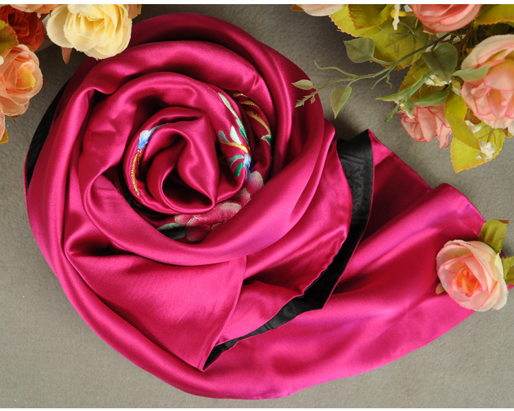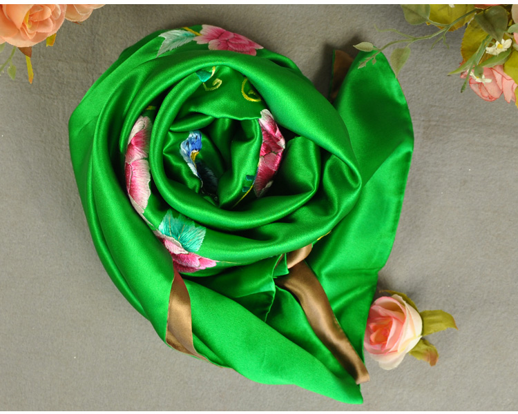 純手工繡花圍巾 真絲圍巾 桑蠶絲 高檔絲綢禮品