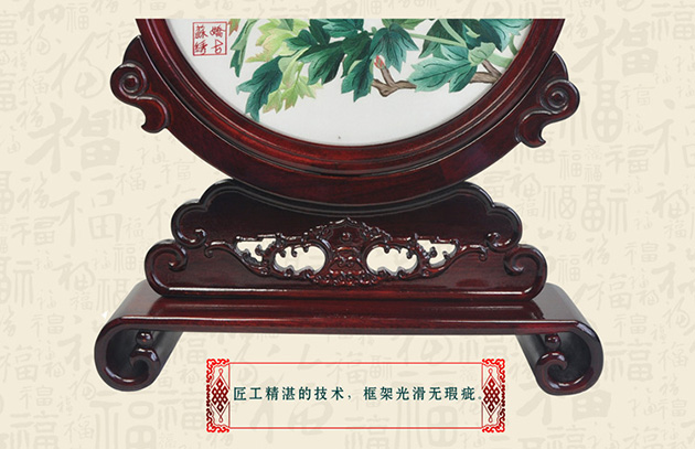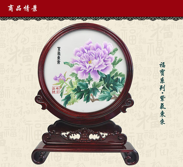 產品名稱:新款擺臺紫氣東來(雙面繡) (作品代碼:XS-289)產品規格:圖案尺寸25CM的圓外框整體尺寸寬39CM,高45CM產品工藝:蘇州繡娘手工刺繡。產品材質:真絲面料+桑蠶絲線+玻璃+紅木 產品包裝:錦盒禮品裝、贈嬌古蘇繡專用手提袋產品重量(含包裝):2KG左右嬌古出廠價:3200元/件